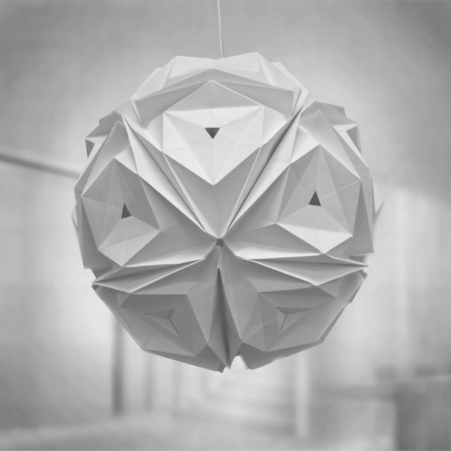 Folded from twenty pieces of paper. LED globe to provide warm and bright light.